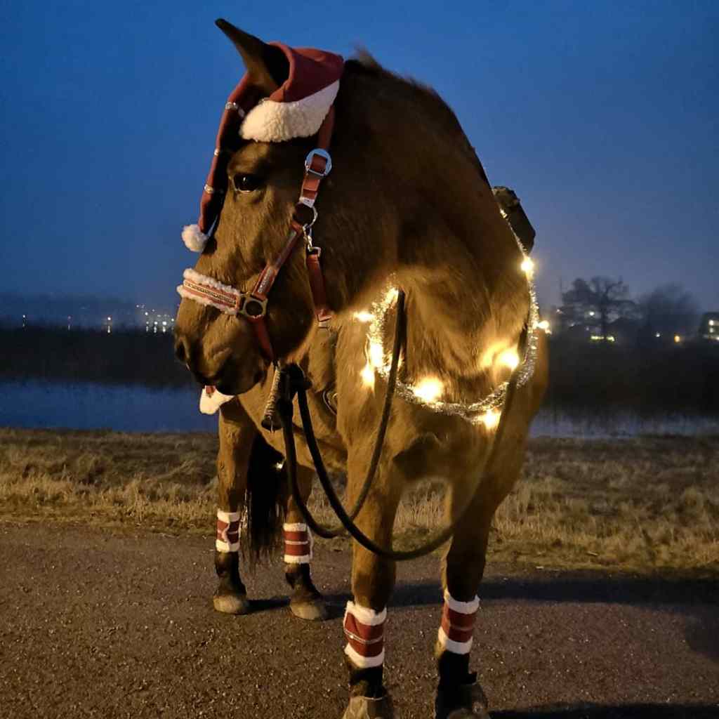 Viktigt att tänka på att det inte finns tex elkabel till julbelysning eller andra föremål som hästen kan trampa på eller fastna i.